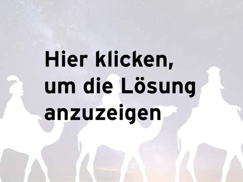 Von den vier Antworten ist immer genau eine korrekt. Geben Sie ZUERST Ihren Tipp ab und klicken Sie DANACH auf das Bild, um die Lösung anzuzeigen. Googeln und schummeln verboten. Viel Glück!