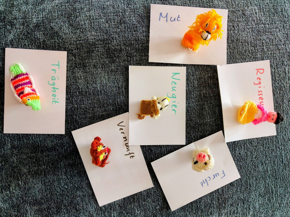 Zeit, dass ich als Regisseurin eingreife. Ich lasse die Trägheit und die Ungeduld in den Hintergrund der Bühne treten. Die Vernunft darf in der Mitte bleiben, aber nicht ganz vorne, sodass sie jederzeit ihre Sichtweise einbringen kann. Die Neugier und die Furcht stelle ich gegenüber und lasse sie miteinander ins Gespräch kommen. Doch die Neugier scheint nicht die geeignete Gesprächspartnerin zu sein, denn sie redet und hört nicht zu und das verstärkt die Bedenken der Furcht. Umgekehrt scheint die Neugier so die Furcht abwehren zu wollen. Ich richte meine Aufmerksamkeit zum hinteren Teil der Bühne, und siehe da, jetzt, da sich im Prozess etwas bewegt, erscheint die Ungeduld eher als Mut. Sie wird das neue Gegenüber der Furcht. Nun werden Argumente ausgetauscht, die Vernunft wirft ab und zu ihre Gesichtspunkte ein und schliesslich einigt sich das Dreiergespann, dass die Furcht die Aufgabe bekommt, zu warnen, wenn etwas überstürzt wird oder schiefzugehen droht. So fühlt sie sich sicher und kann für das Neue gewonnen werden.