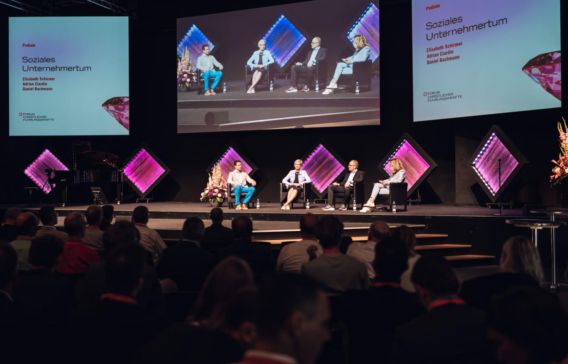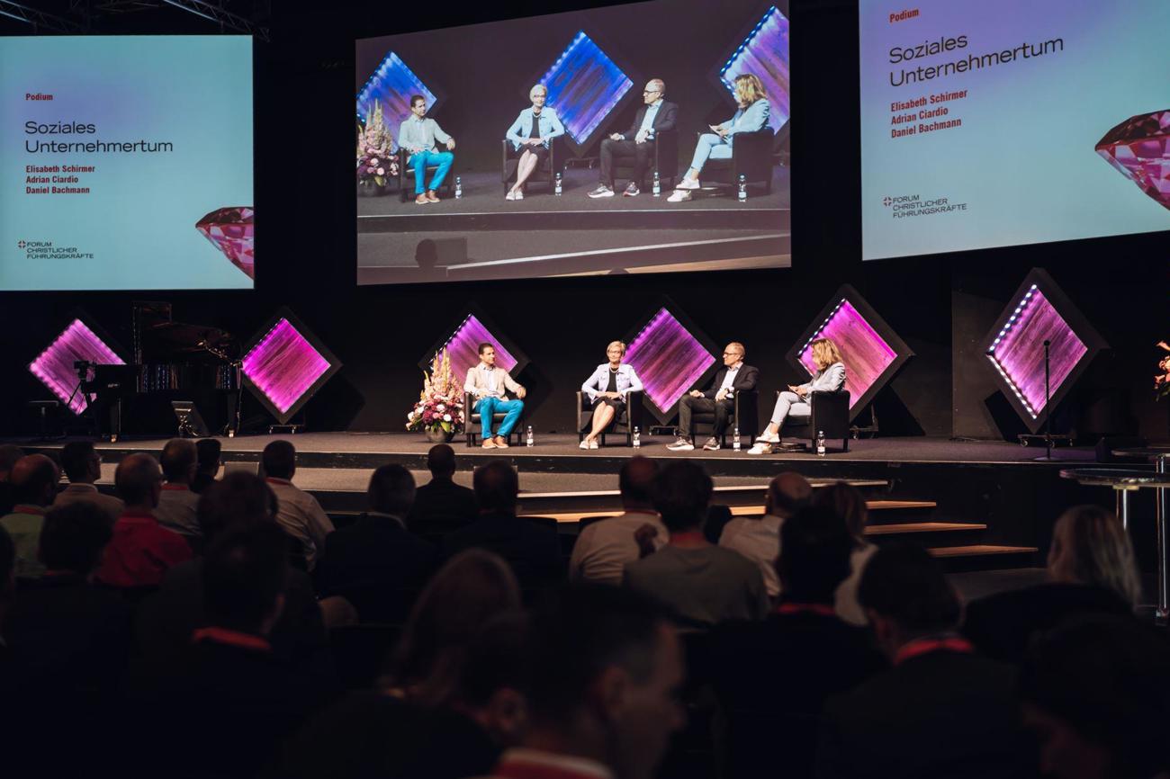 Auf dem Podium über soziales Unternehmertum machten drei Führungskräfte klar, wie wertvoll es ist, Menschen in den Fokus der wirtschaftlichen Tätigkeit zu rücken: Elisabeth Schirmer, Verwaltungsrätin des Uhrwerkherstellers Ronda, betonte, dass in der «christlichen Ewigkeitsperspektive» die Kraft liege, die im Alltag den Unterschied mache.