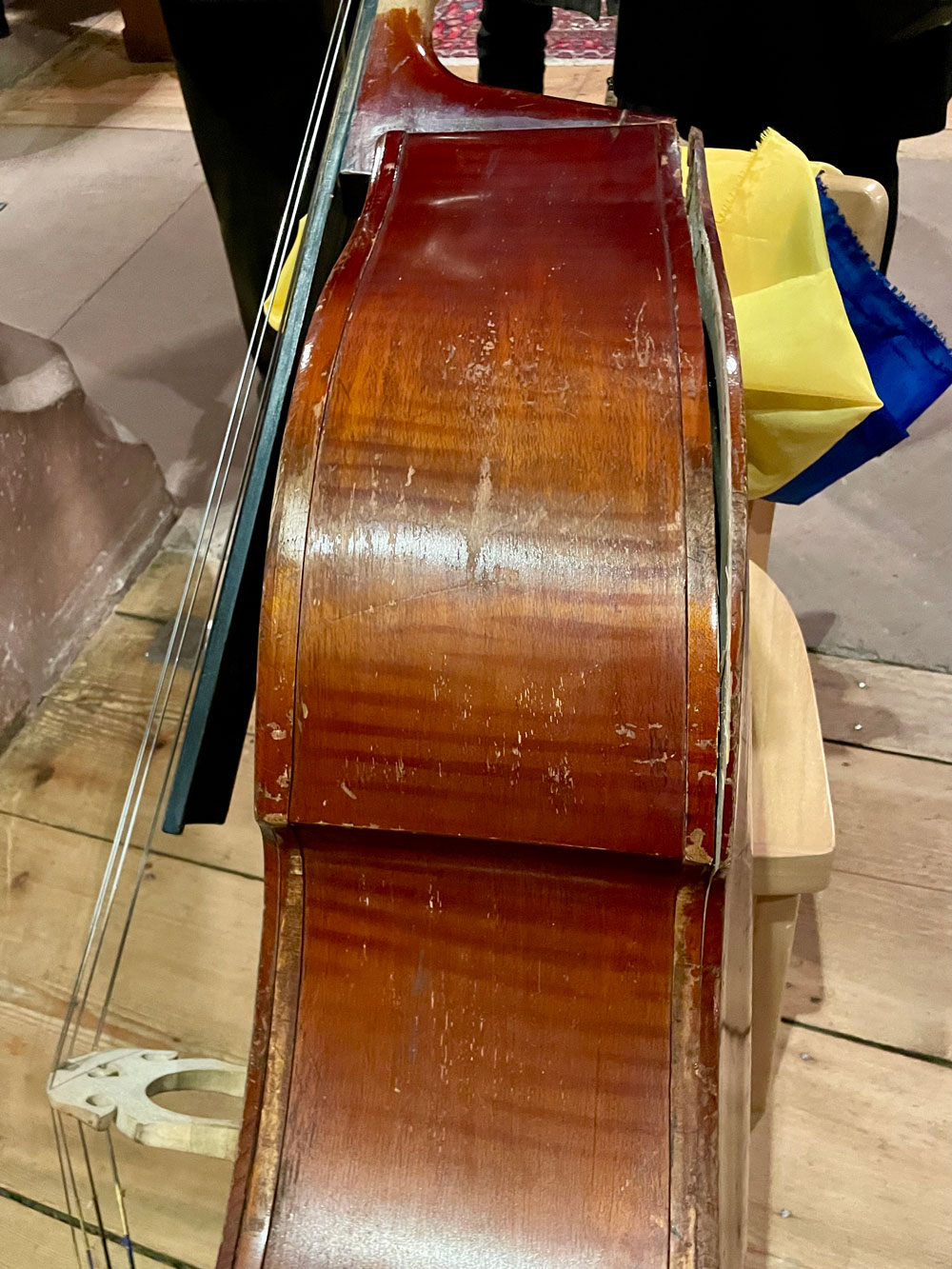 Zwischen den Reden und Gebeten spielte das Kammerorchester aus Mariupol unter der Leitung von Vasyl Kriachok Werke ukrainischer Komponisten. Für einen Moment schienen Krieg und Entbehrungen weit weg. Doch während des Konzerts zerbarst der mächtige Kontrabass hör- und sichtbar. Die Musikerin stimmte das beschädigte Instrument in der kurzen Pause neu und spielte unbeirrt weiter – ein Sinnbild für die unerschütterliche Haltung der Ukrainer, war man sich im Publikum einig.