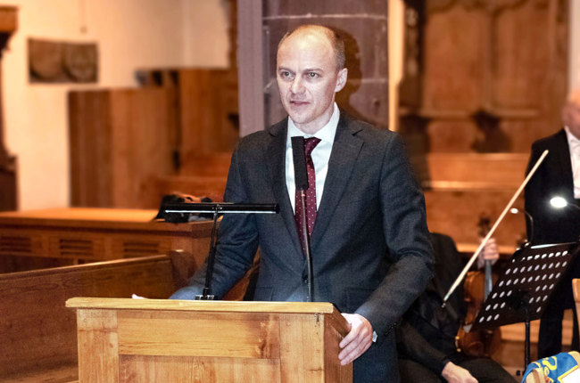Conradin Cramer, Regierungspräsident von Basel-Stadt, begrüsste die Gäste in der voll besetzten Theodorskirche. Er dankte ihnen für ihr zahlreiches Erscheinen, um Mitgefühl und Solidarität zu zeigen. «Wir versammeln uns aus traurigem Anlass. Seit dem russischen Angriff auf die Ukraine sind drei Jahre vergangen. Und nun hören wir in dieser Woche Dinge vom sogenannten Führer der freien Welt, die uns entsetzen.» Cramer spielte auf die jüngste Kehrtwende des US-Präsidenten Donald Trump an, der Friedensverhandlungen mit Putin ohne die Ukraine plant und dem ukrainischen Präsident Selenskyj die Schuld an der Dauer des Krieges gibt.